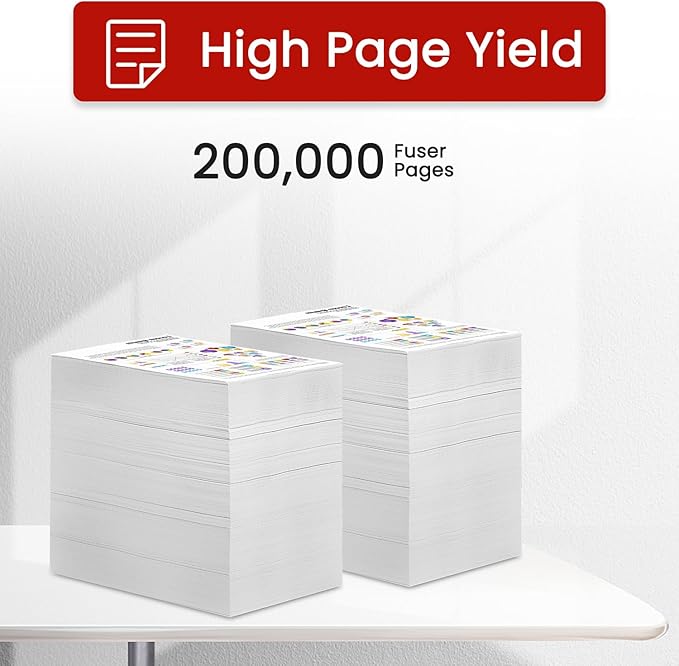 - High Page Yield: Up to 200,000 pages per B400 fuser kit at 5% coverage of A4 paper