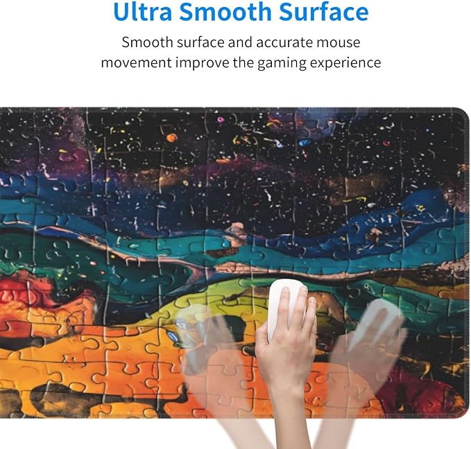 - 💻【ULTRA-SMOOTH SURFACE】: This large mouse pad adopts superfine Lycra cloth on cover, which will make your mice glide on its surface smoothly. Provides you frustration-free mouse movement. Optimized for fast movement while maintaining excellent speed and control during your work or game, available for mechanical, wireless and optical mice.