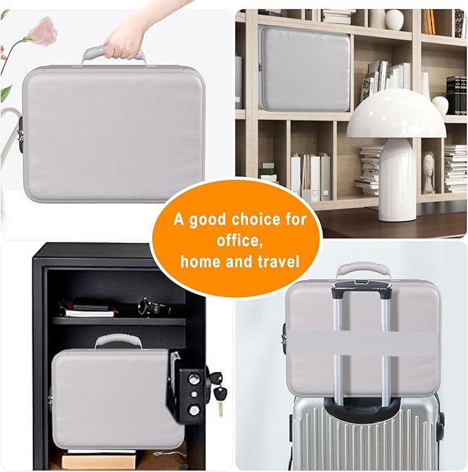 - Combination Lock Protection: Compared with other bags,our 5200°F fireproof document organizer can lock files and items inside the bag for safety. High-quality password lock provides maximum security for your valuables such as contracts, cards, certificates, conference materials, passports, etc. More wider strap handle design on the back allows you to insert a suitcase handle. Fireproof bag for files is sealed with professional waterproof zippers that can withstand high speed spray of fire hose