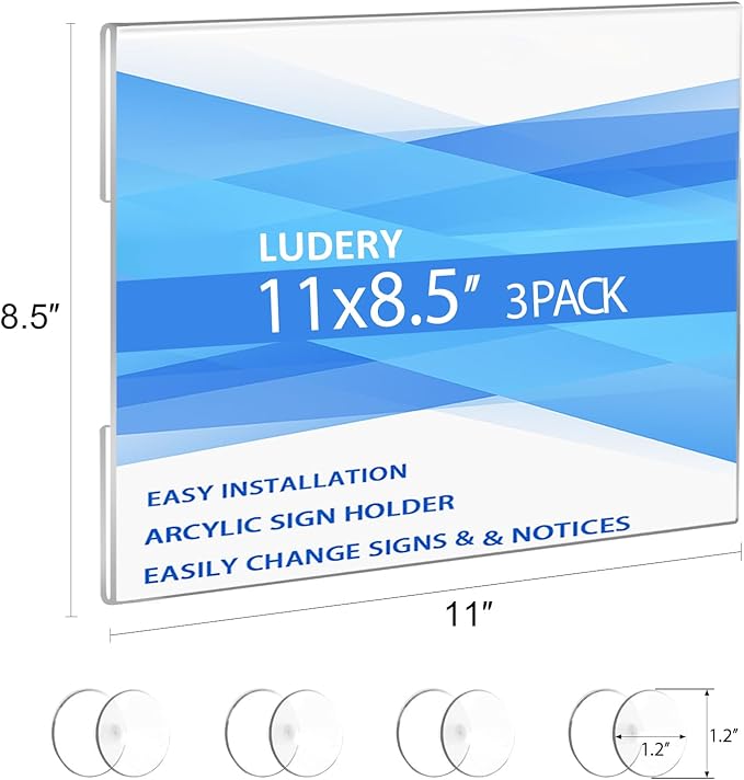 Acrylic Window Sign Holder 8.5 x 11 with 4 Suction Cups,Clear Acrylic Frames Glass Window Wall Mount,Advertising Signage Sign Holder for Mall, Office, Home, Store, Restaurant (3 Pack)