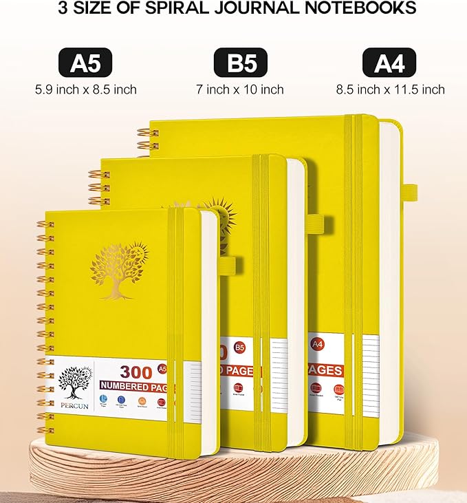 - 【A5 Spiral Notebook & 300 Numbered Lined Pages】This spiral journal notebook 5.9in x 8.5in features 300 numbered lined pages, 1 persona data page and 3 pages Content, offering extensive space for your notes, ideas, and sketches. The college ruled format makes it ideal for use as a journal for women, men.The 7mm line spacing ensures a comfortable writing experience, while the spiral bound design makes it a great choice for college ruled spiral notebooks and spiral bound journals.