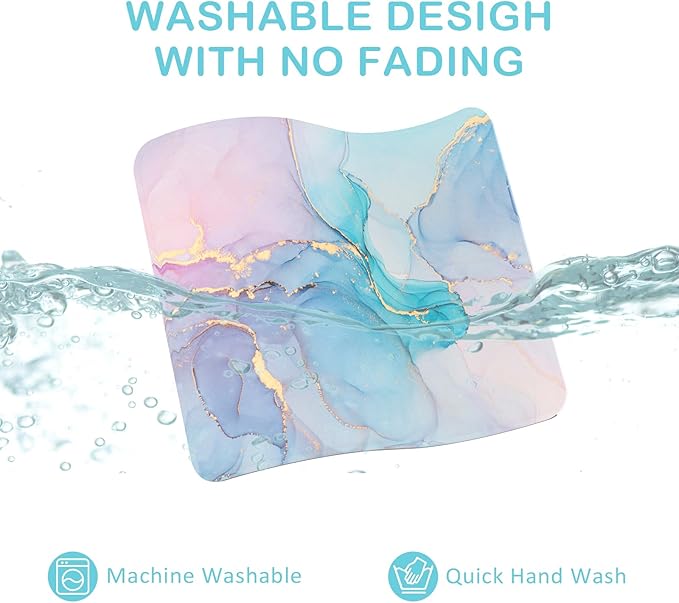 eulps Mouse Pad with Stitched Edge, Multiple Patterns Computer Mouse Pads with Non-Slip Rubber Base, Washable Cloth Mousepad, for Gaming, Laptop, PC (Blue Blush Marble)