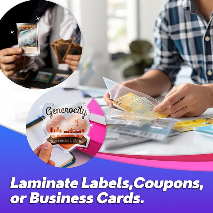 - Quick and Easy Self-Laminating: Effortlessly protect and preserve important documents, photos, and artwork with a quick, self-laminating process that requires no machines or heat.