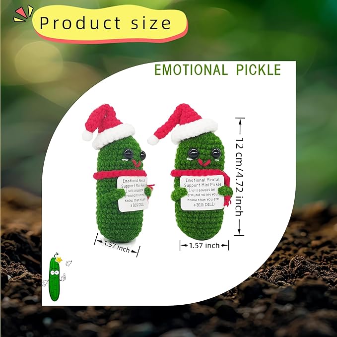 - Size details: Each emotional support crochet cucumber/ pickle measures about 3.9 inches/10 cm in length, 1.5 inches/4 cm in width, and 1.5 inches/7 cm in height; the size details before you buy; These mini crochet knitted pickle are all hand made.