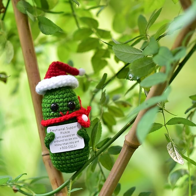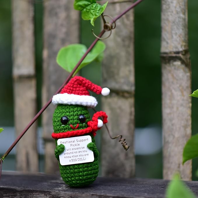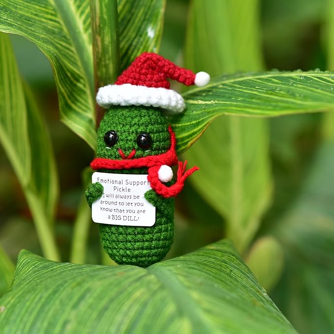 - Emotional Support crochet cucumber/Pickle Gift: Crafted with premium knitted wool, this pickle is not only cute but also incredibly soft and huggable. Its exquisite design showcases the attention to detail put into creating this little bundle of joy. The intricate knitting patterns and vibrant colors make it a delightful addition to any home decor.