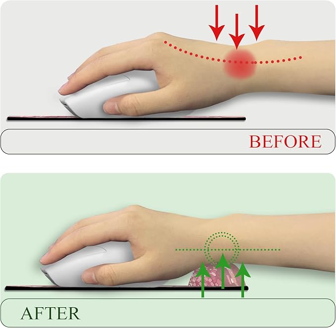 - Pain Relief and Comfort: The wrist rest on our mouse pad offers gentle support, relieving wrist pain and promoting proper alignment to reduce the risk of injuries during long hours of use