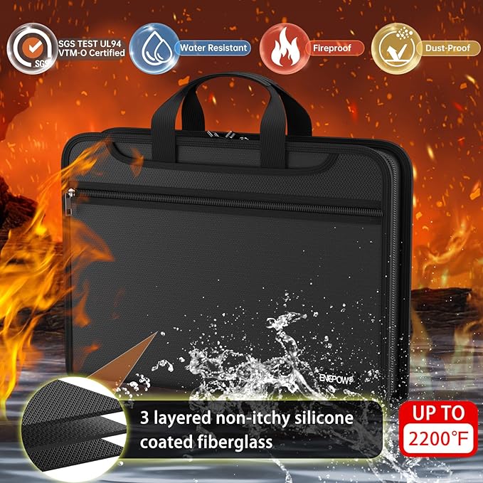 - Premium Fireproof Protection: Protect your files with ENGPOW fireproof accordion file organizer.It is made of 3-layered non-itchy silicone-coated fiberglass which withstand the temperature up to 2200℉ and is UL94 VTM-0 certified by SGS. This fireproof and water-resistant folder ensures your files stay safe from fire, flood, and wet weather, giving you peace of mind during emergencies. Nothing is completely foolproof, but added protection is always a good idea
