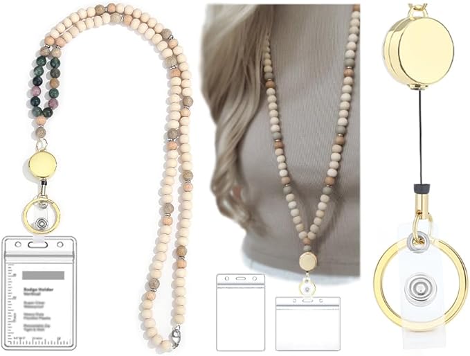 - Perfect Size & Retractable - This beaded lanyard for women measures approximately 34 inches perfect size, 25" retractable wire of the ID holder is great and you don't have to take it off to use the keys or badges.
