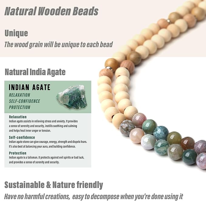 - Premium Quality - The cute lanyard for id badges is made from 8mm natural wooden beads and 8mm genuine India Agate, with stainless steel lobster clasp and key ring. Every natural bead is high quality natural bead and has been carefully selected manually one by one.