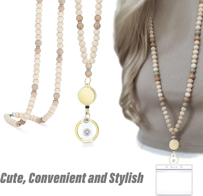 - Stylish Retractable Lanyard for ID Badges - Natural wooden bead lanyards for ID badges. Retractable, stylish and cute. Great as teacher lanyard, lanyards for keys, lanyards for id badges holder, cute keychain lanyard for women, lanyards for cruise ship cards, cruise lanyard for ship cards.