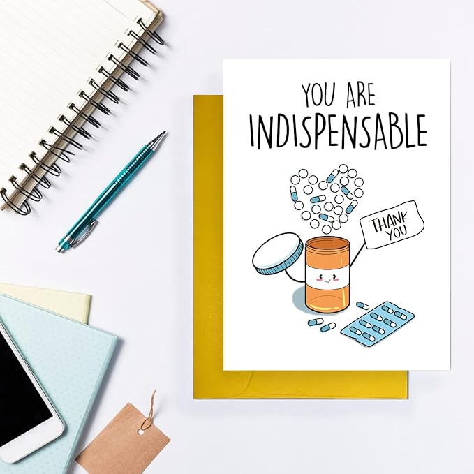 - Heartfelt Gratitude Card: This is a cute funny medicine themed card that is perfect to show medical workers how much you appreciate them. Great for pharmacy, pharmacists, doctors, nurses and medical staff. A thoughtful thank you card to express sincere appreciation for someone's kindness, generosity, or support.