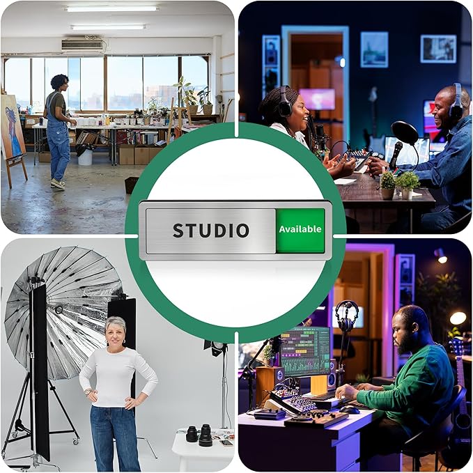 - Clear Status Indicators: The acrylic slider design allows for easy visibility and understanding of whether the room is "In Use" or "Available," avoiding interruptions during filming, live broadcasts, and interviews.