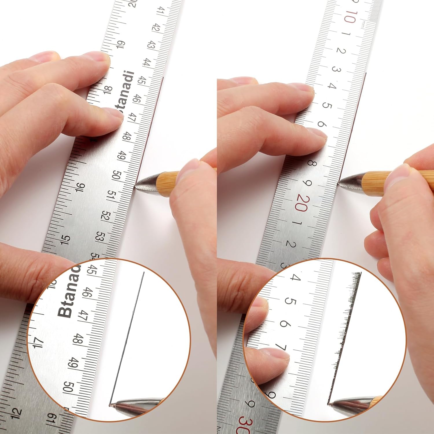 - Slip-Resistant Design: This metal ruler with cork backing keeps firmly in place during use, preventing ink from falling under the ruler and keeping your work area clean and neat. This user-friendly design makes your tasks easier and more convenient.