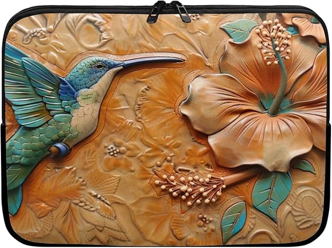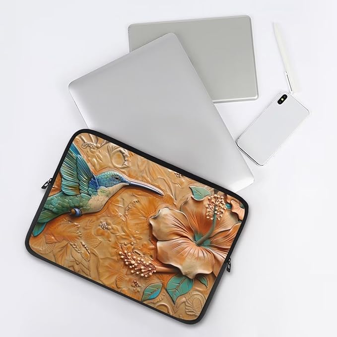 Hibiscus Hummingbird Printed Computer Case Bag for Girls Boys, Washable 12 Inch Laptop Bag Carrying Case Laptop Briefcase Neoprene with Zipper, Compatible with Various Computers, Pink