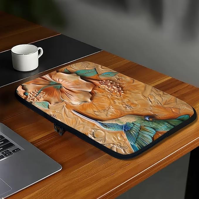Hibiscus Hummingbird Printed Computer Case Bag for Girls Boys, Washable 10 Inch Laptop Bag Carrying Case Laptop Briefcase Neoprene with Zipper, Compatible with Various Computers, Pink