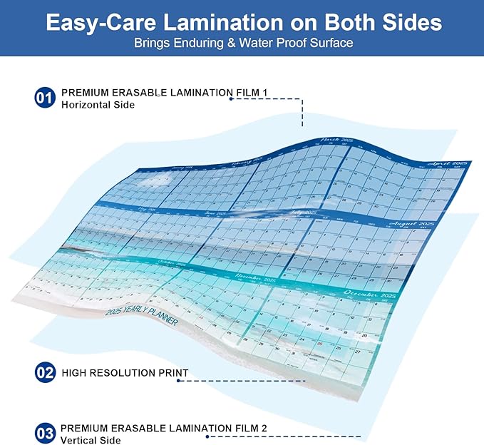 - ✅ Perfect Gift: This beach background erasable calendar 2025 wall is more than just a practical calendar and planner, it’s a decorative piece that brings the serene beauty of the sea into your daily life. It's well packed by an elegantly designed giftbox, make it an ideal gift for nature enthusiasts and a perfect present for friends, family, or collegues who appreciate the calming influence of nature.
