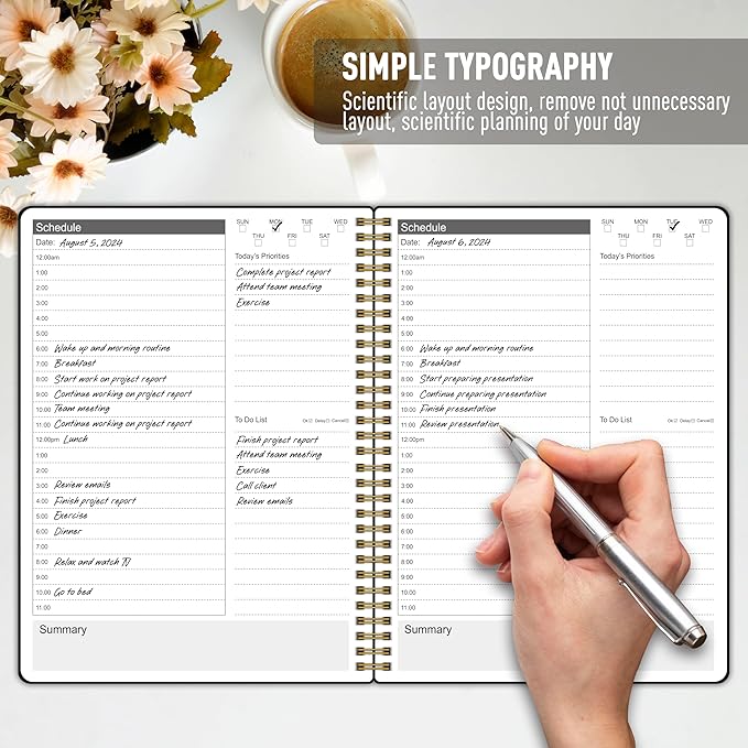 - 24-Hour Schedule Management:Designed with a detailed 24-hour schedule, record every hour. This planner includes sections for top priorities, to-do lists, summary. Break your day into 24 hours and enhance your daily efficiency
