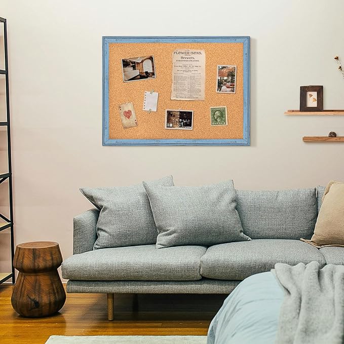 - Thick Solid Frame: Featured in a vintage-style blue design, our bulletin board adds a rustic look to your room or office. Not only a bulletin board but also a perfect decoration. The thick and sturdy frame ensures a long-time use of this corkboard