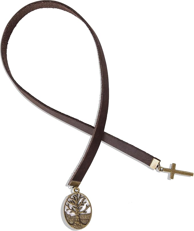 Bookmarks, Handmade Retro Cross Tree of Life Bible Bookmark with Long Leather Straps, Christian Saint Book Mark, Ideal Christian Gift (Style 16)