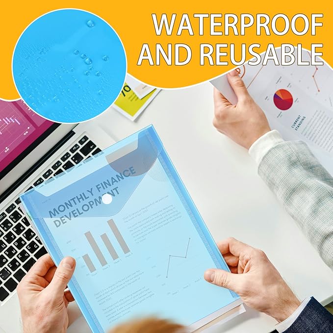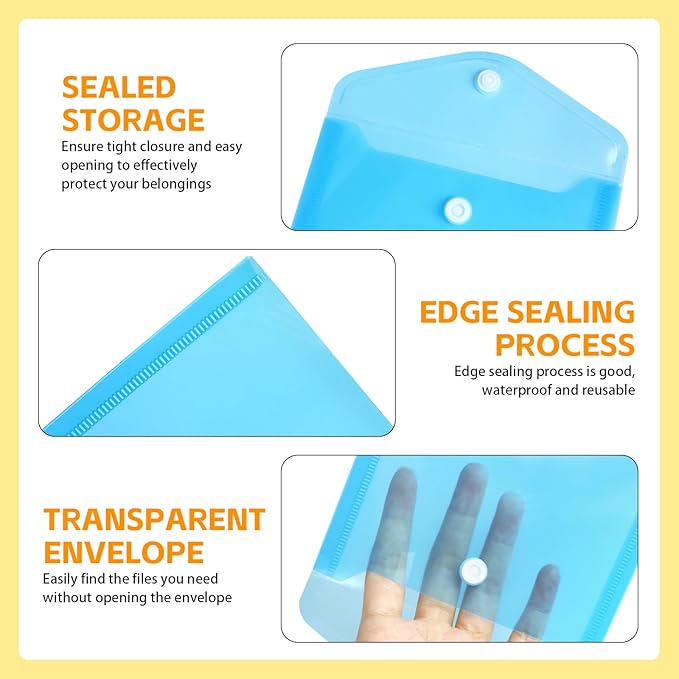 - Premium Quality: The plastic envelopes are made of thickened plastic, with good edge sealing workmanship, waterproof and reusable, and the clear envelopes allow you to directly see the documents inside, so you can easily find the documents you need without opening the envelope