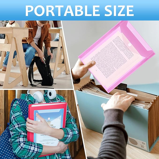 - Portable Size: Each plastic folder is 7" x 9.4", lightweight, waterproof, soft and flexible, you can easily put them in a drawer, backpack or storage box , easy to carry and can be used for a long time