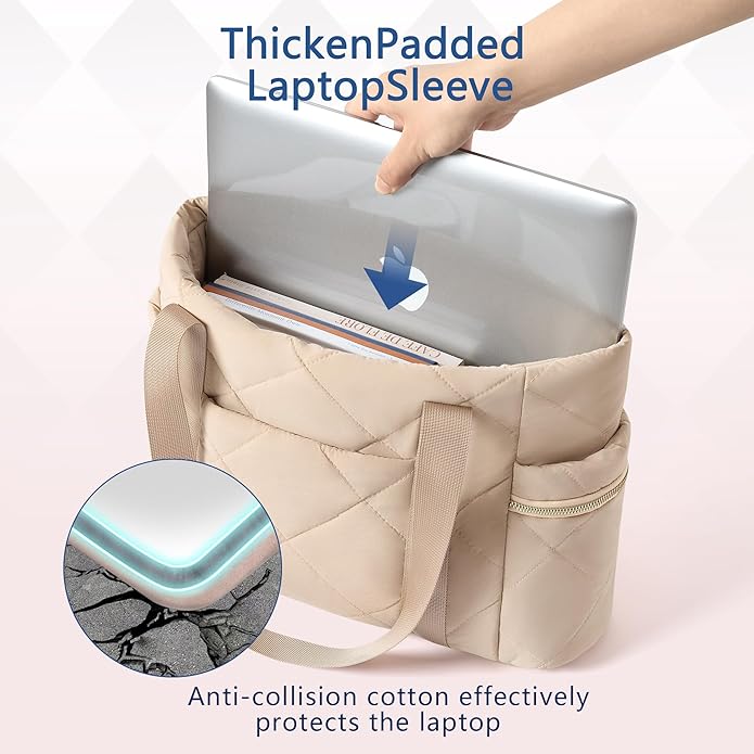 Tote bag for Women Puffer Shoulder Bag with Zipper Travel Quilted Nurse Bag Carry On Laptop Bag for Travel Work