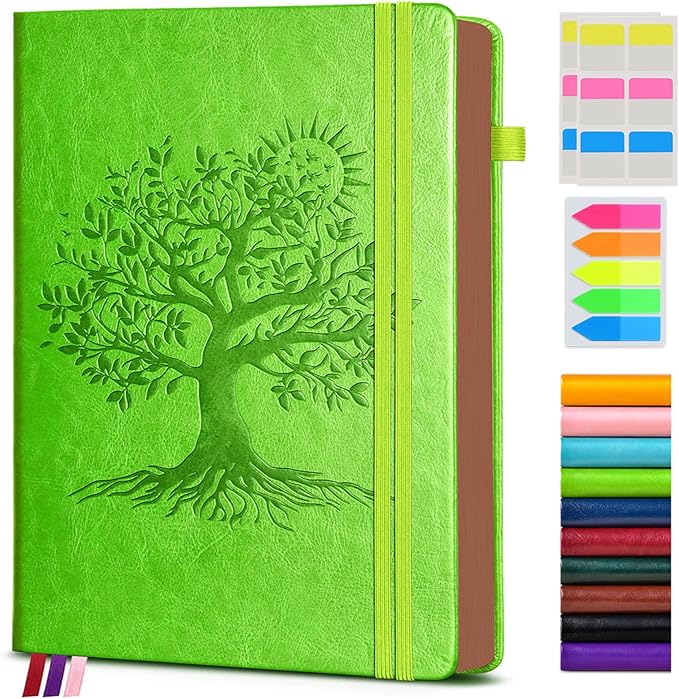 - 【BUILT-IN FEATURES FOR CONVENIENCE】This journal notebook comes with several useful features.The 1 built-in back pocket is ideal for storing loose papers or small items. The 1 elastic pen holder keeps your pen handy at all times.The 2 elastic closures ensure that the notebook stays securely closed.Additionally, the 3 colored ribbon bookmarks help you easily find your place.And the 3 free sticky tabs are great for marking important sections.