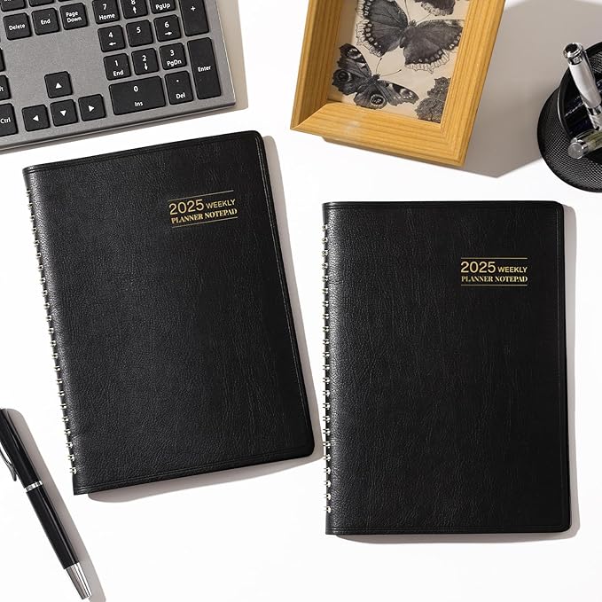 - 🖤 2025 Planner - This 2025 planner weekly and monthly dates from JAN 2025 - DEC 2025, the size is: 8.5'' x 6.4'', it’s the great size for your daily planning. The soft faux leather cover of the planner makes it easier to put into backpacks, handbags, and without leaving any traces on the cover.