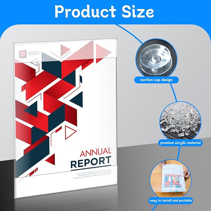 8.5 x 11 Acrylic Sign Holder with 12 Suction Cups, Clear Plastic Window Sign Holder, Wall Mount Advertising Frames for Glass Doors - Perfect for Malls, Offices, Homes, Stores, and Restaurants (2 Pack)