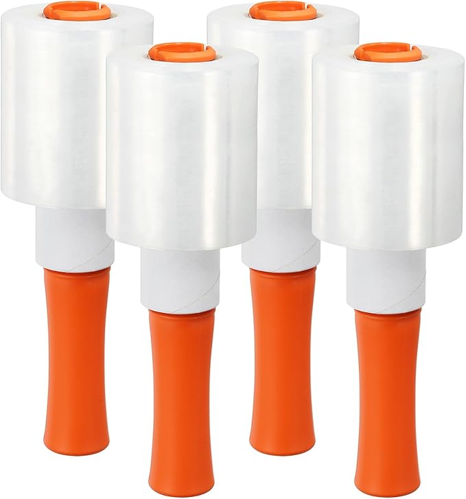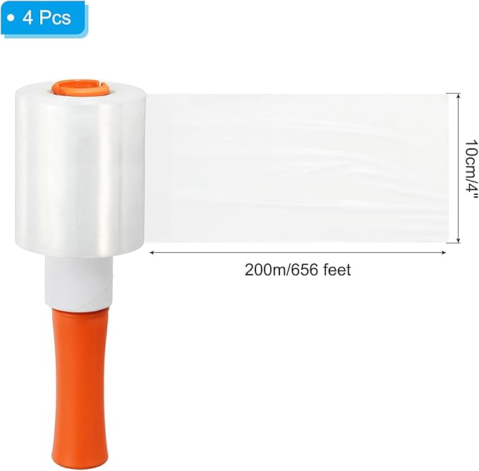 PATIKIL 4" x 656 Feet Stretch Wrap Roll, 4 Pack 80 Gauge/20 mic Thick Mini Shrink Stretch Film Industrial Clear Plastic Wrap with Handle for Box Packing Shipping Moving