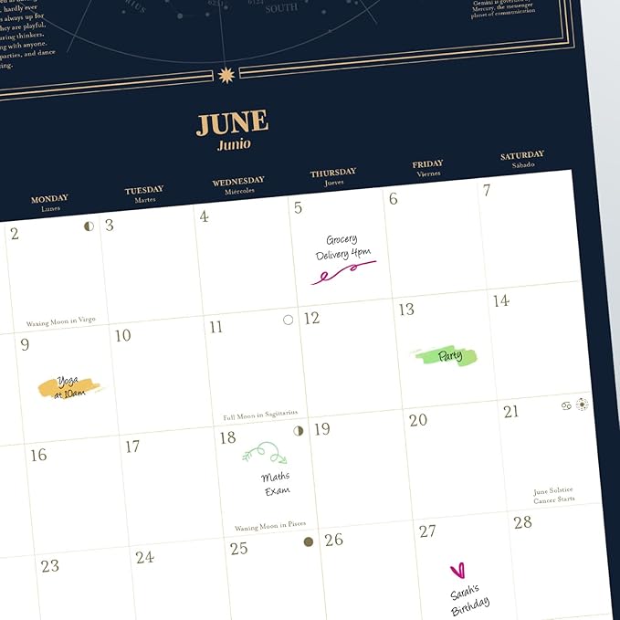 - 2025 Calendar - Includes a free poster (located as a centerfold - after June and July). The wall planner includes 12 specially designed images for each month of the year, full of colours and originality. Keep your room's positive energy and surprise your friends with this perfect gift.