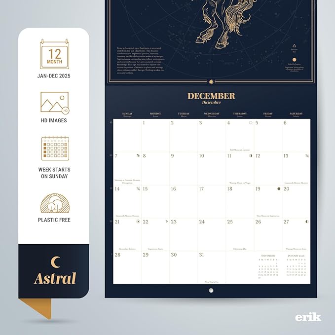 Astral Wall Calendar 2025 12" x 12" FSC® Plastic Free - Starts Week On Sunday | Square Wall Calendar | Family Planner Calendar 2025 | Astrological Calendar 2025