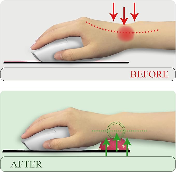 - Ergonomic Design: This cute pink ergonomic mouse pad with wrist rest is a high-quality mouse pad designed to provide comfort and support during long hours of computer use. The silky smooth Lycra cover on top allows for easy mouse movement, while the gel wrist rest ensures flexibility and comfort