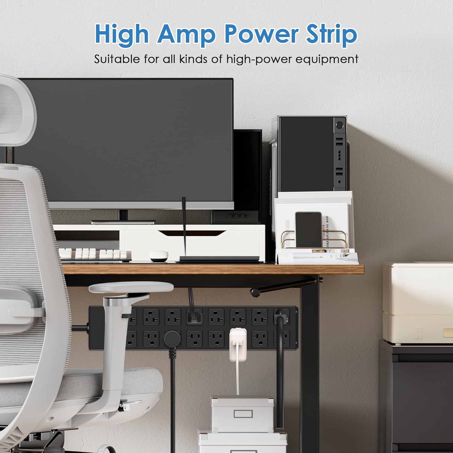 - Built-in 20A circuit breaker provided superior protection for everyday use in professional work areas and home offices, protecting computers, and other electronic devices from damaging surges, voltage fluctuations and noise spikes.