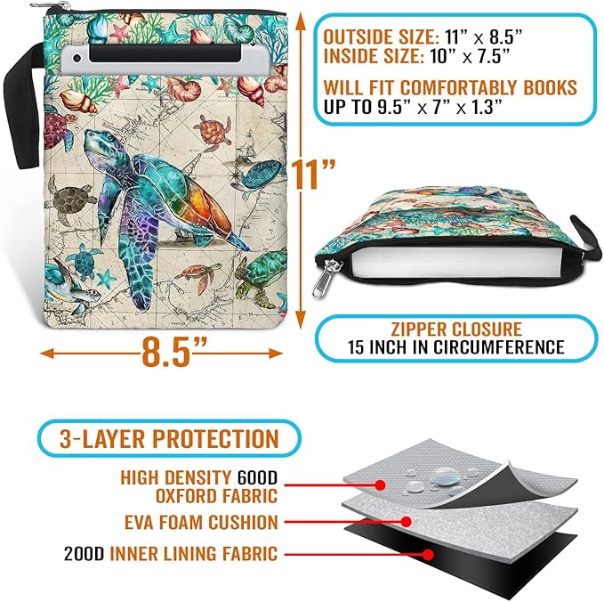 - ROOMY SPACE: With dimensions of approximately 11 x 8.5 inches on the outside and 10 x 7.5 inches on the inside, this bag is designed to fit a variety of books, including standard paperbacks, mass paperbacks, and regular hardcovers. It can accommodate books up to 9.5" x 7" x 1.3", making it versatile and suitable for all your reading needs!