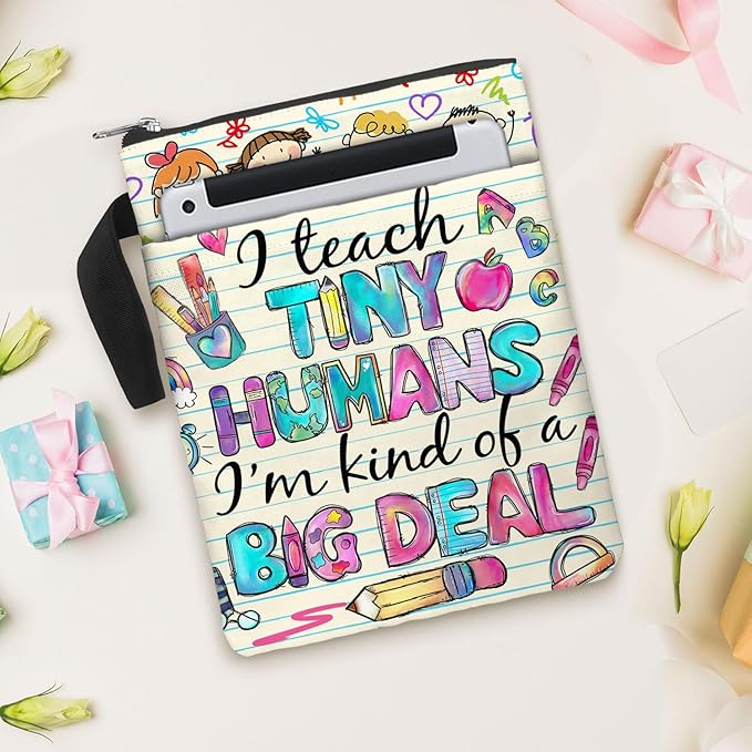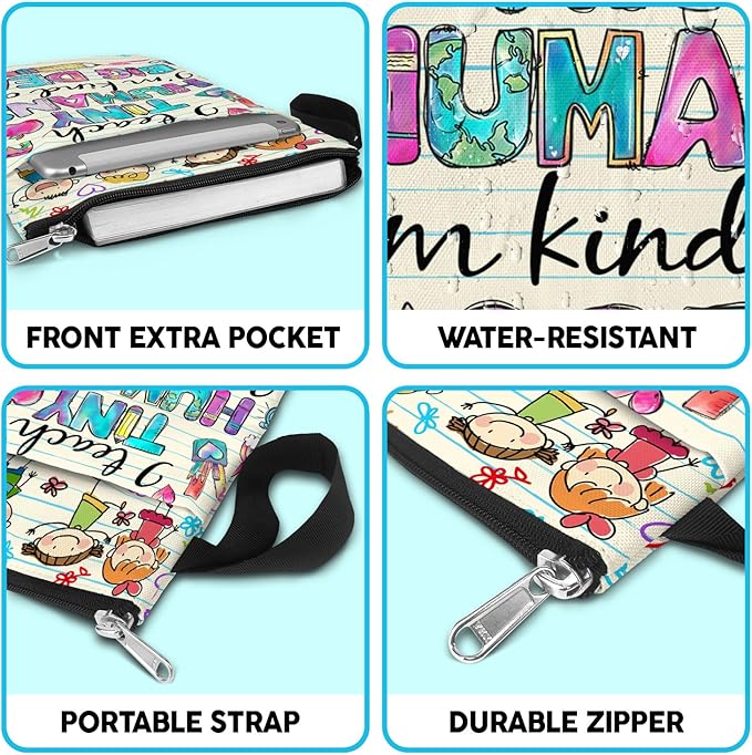 84hoods Book Sleeve Bag Gift for Teachers and Book Lovers. Book Cover Bag with Zipper and Front Pocket for Paperbacks. Washable Fabric 11 X 8.5 Inch Padded Book Bag Protector Pouch. Tiny Humans.