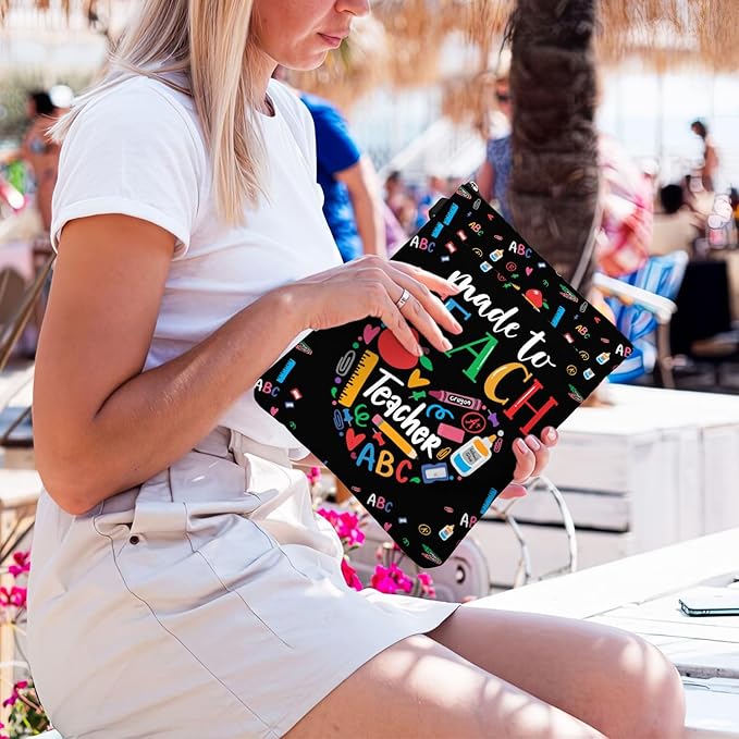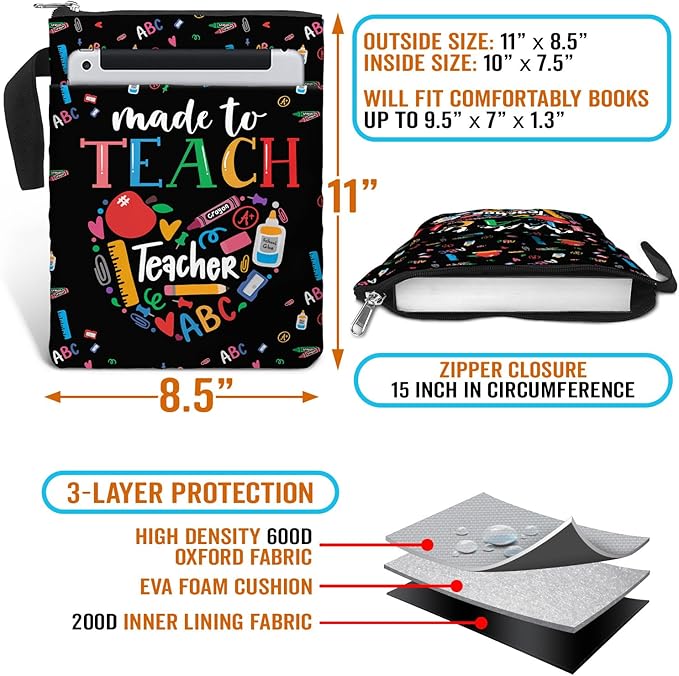 84hoods Book Sleeve Gift for Teachers & Lovers. Padded Book Bag Protector with Zipper & Front Pocket. Washable Fabric, 11 x 8.5 Inch. Made to Teach.