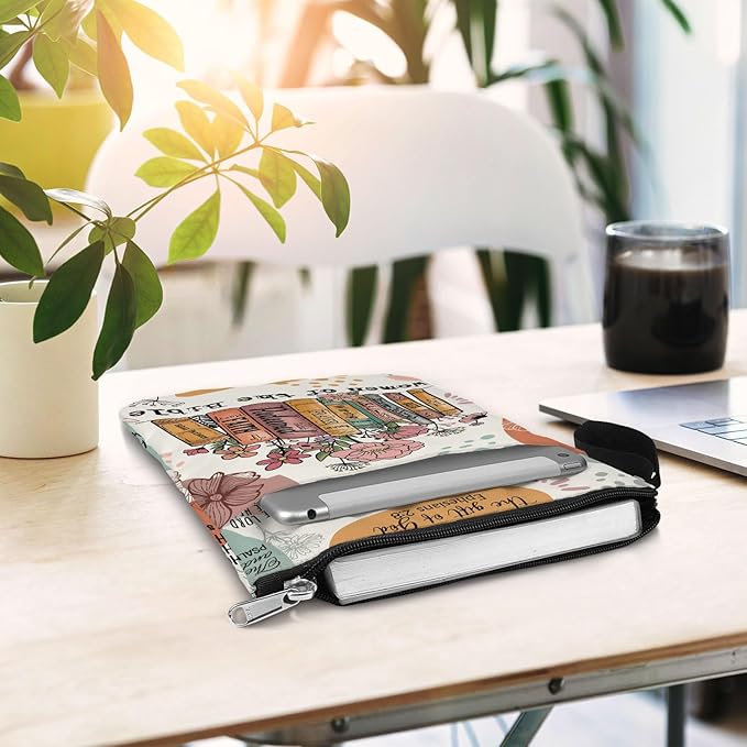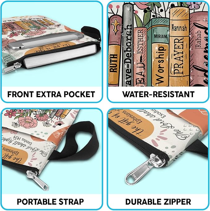 Book Sleeve. Christian Faith God Religious Gift. Bible Book Cover with Zipper and Front Pocket. Washable 11 X 8.5 Inch Padded Book Bag. Gift for Book Lovers. Women of The Bible