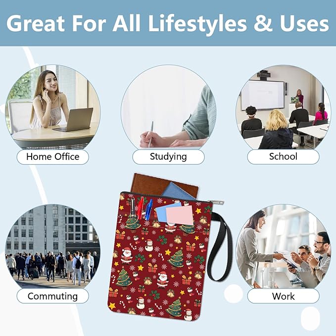 CRASPIRE Christmas Tree Book Sleeve Santa Book Protector Xmas Book Covers for Paperbacks Washable Fabric Cloth Book Cover with Zipper and Extra Sleeve Pocket for Book Lovers Classmate Gifts