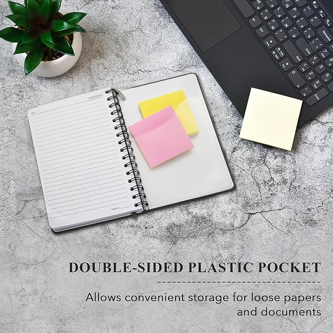 - NOTE BOOK WITH POCKETS - Our thick paper journal spiral bound notebook is equipped with a double-sided plastic pocket, and lets you securely store important documents, notes, or loose papers excellent for both personal and professional use.