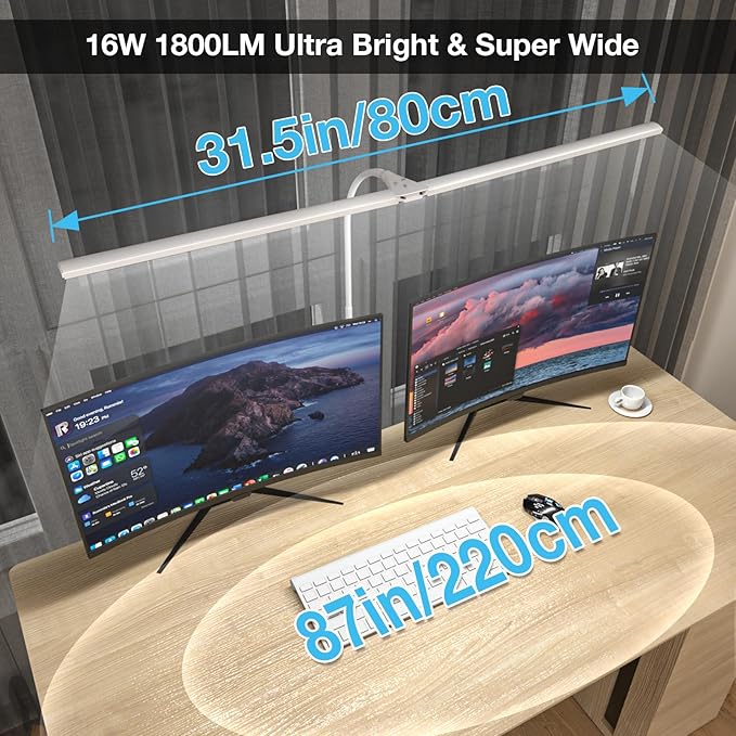 - Eye-Caring&Memory Function: home desk light features comfortable and soft light of CRI>93, 1800lm. No glare, flicker and ghosting, adjustable light settings help you better adapt to the vision. The previous brightness and color mode will be retained as long as being properly turned off via power button