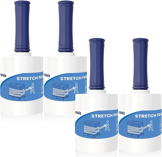 ADHES Mini Hand Stretch Wrap Film, 5 Inch x 1000 Feet, 4-Pack 80 Gauge Industrial Strength Stretch Film, Shrink Wrap Roll for Packing, Pallet Wrap, Furniture Wrapping Moving & Protection