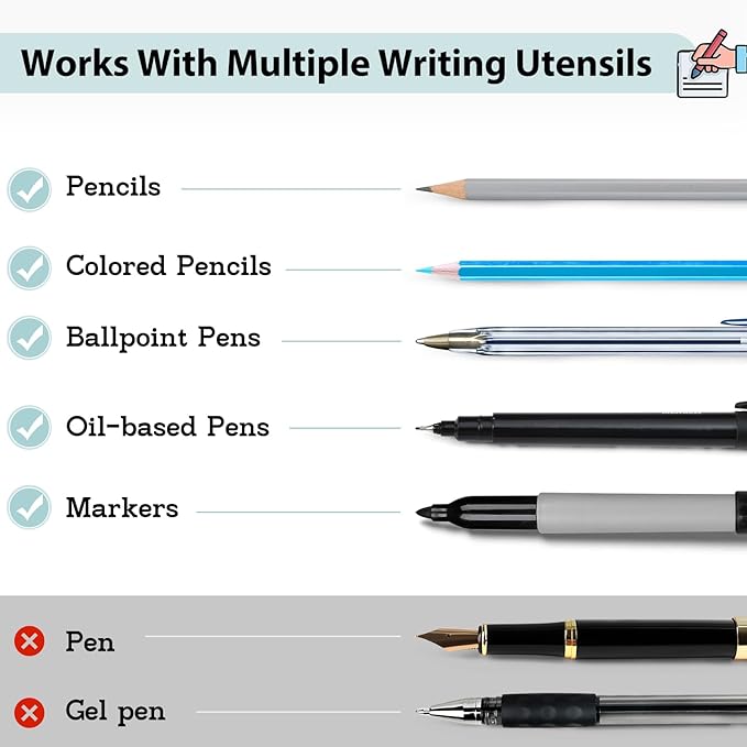 - Multi-Pen Type for Smooth Writing: Transparent sticky notes have a smooth writing experience. Suitable for ballpoint pens, pencils, markers, oil-based pens, but not recommended for fountain pens and gel pens.