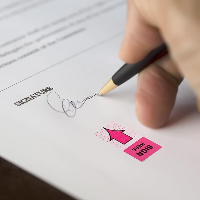 - Easy to Use: Just tear off signature tabs and stick them on smooth and dry surfaces where you need to mark. It is easy to stick, tear off, and will not leave traces on the sticking surface.