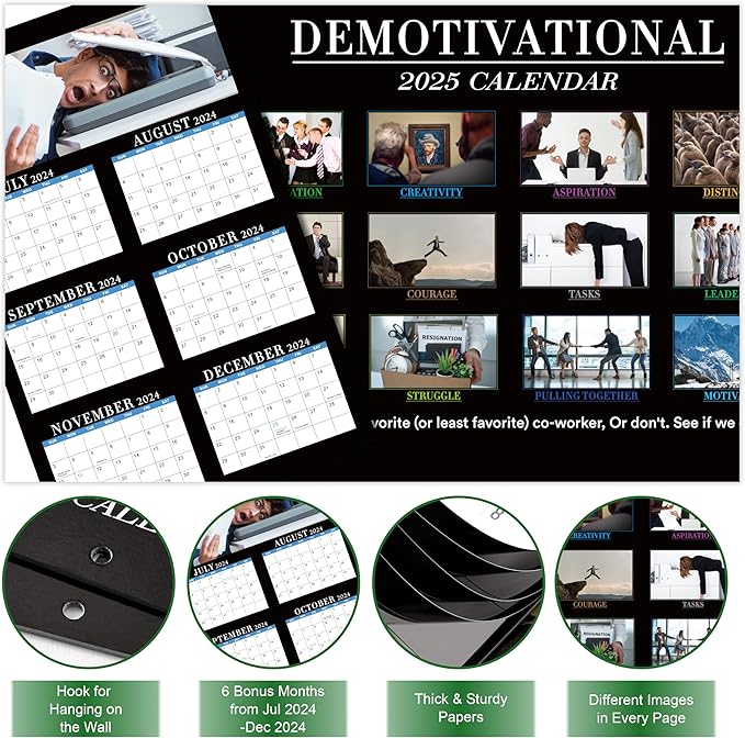 - FUNNY DEMOTIVATIONAL CALENDAR 2025 - 2025 wall calendar from January 2025 to December 2025, 2025 wall calendar 11 " x 9" is a practical and efficient time management tool, it can help you become a master of time management in your life. The 2025 calendar with 12 different funny images and demotivational sentences, must be a perfect funny gag gifts for your friends.