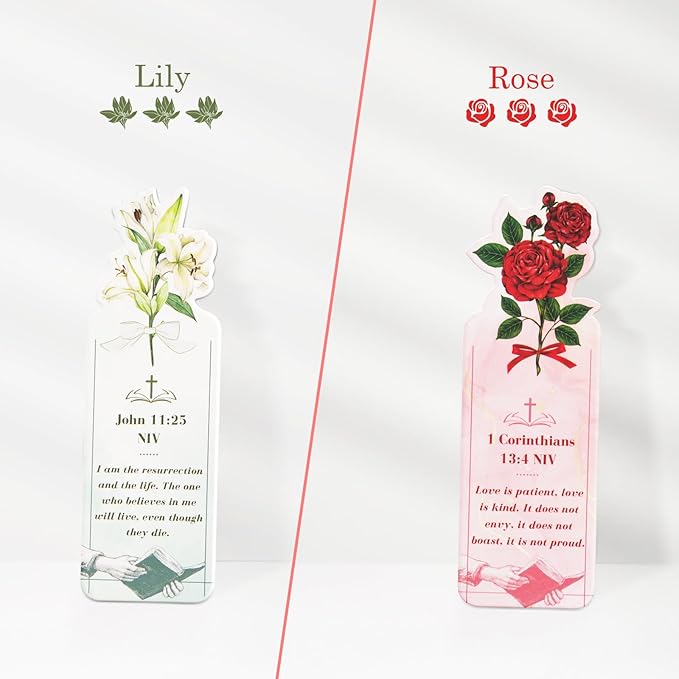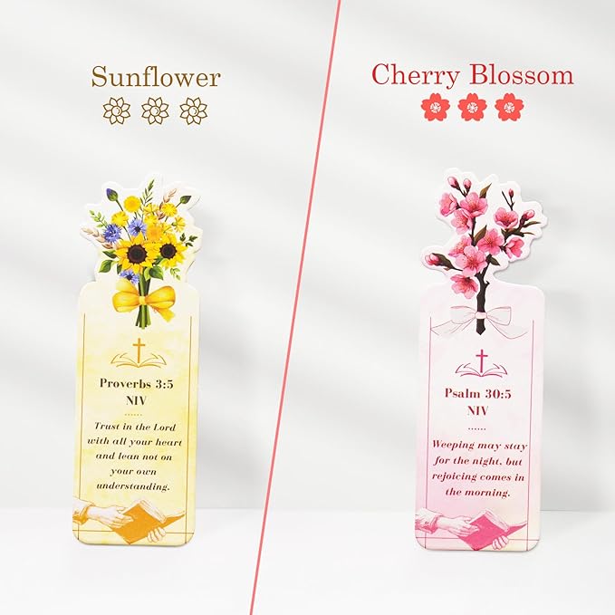 - Five Blooming Flowers, Conveying Divine Blessings: Godglo Christian bookmarks set features five 3D floral bookmarks- rose, lily, carnation, cherry blossom, and sunflower- each symbolizing a unique Christian value. Whether as Bible verses gifts or as inspirational bookmarks for women friends, Christian bookmarks bring blessings and prayer