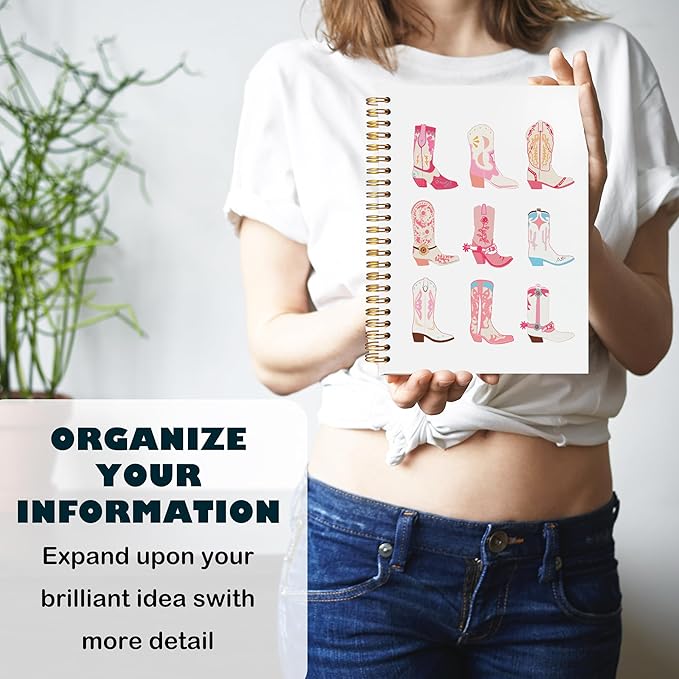 BearCake Cowgirl Boot Notebook, Cowgirl Stuff, Cowgirl Gifts, Western Office Supplies, Western Stuff for Women, Boho Western Notebook Journal 5.5x8.3 white