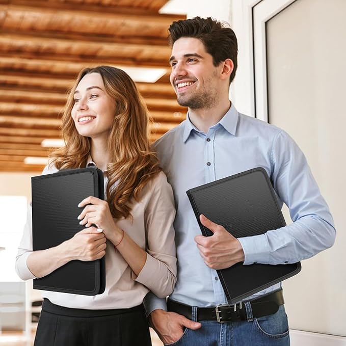 - Easier to Store and Carry - Size: L 14.17" x W 10.63" x H 1.57". Compared with large fireproof boxes on the market, the portable file organizer folders is reasonably sized and lightweight. Whether it is used to store important papers, letters, A4 files, receipts, cards, USB drives, Pens, passports, etc. It also can be carried with you on business trips and travel. The classic black color and simple lines perfectly suit your busy lifestyle. It is also the best gift for your family and friends.