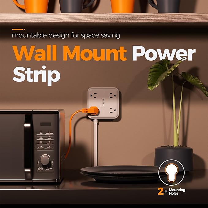 TESSAN 15 FT Extension Cord with USB, Surge Protector Power Strip with 4 Outlets 3 USB A Ports, Multiple 3 Prong Flat Plug, Mountable Desk Charging Station for Office, Home, Dorm Essentials