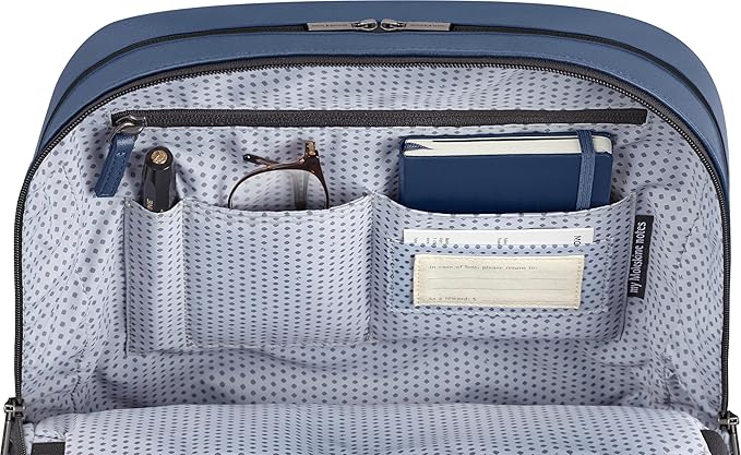 - INTERIOR: - two main zip compartments; stay connected: padded laptop sleeve: 27 x 37 cm / 10.62 x 14.56 inches; 1 secure zip-up pocket and 1 organizer with a pen holder, padded pocket for glasses and business card holder; my Moleskine notes pocket to store ideas: fits Moleskine pocket notebook; azure lining with Moleskine pattern to better see your belongings (100% polyester)